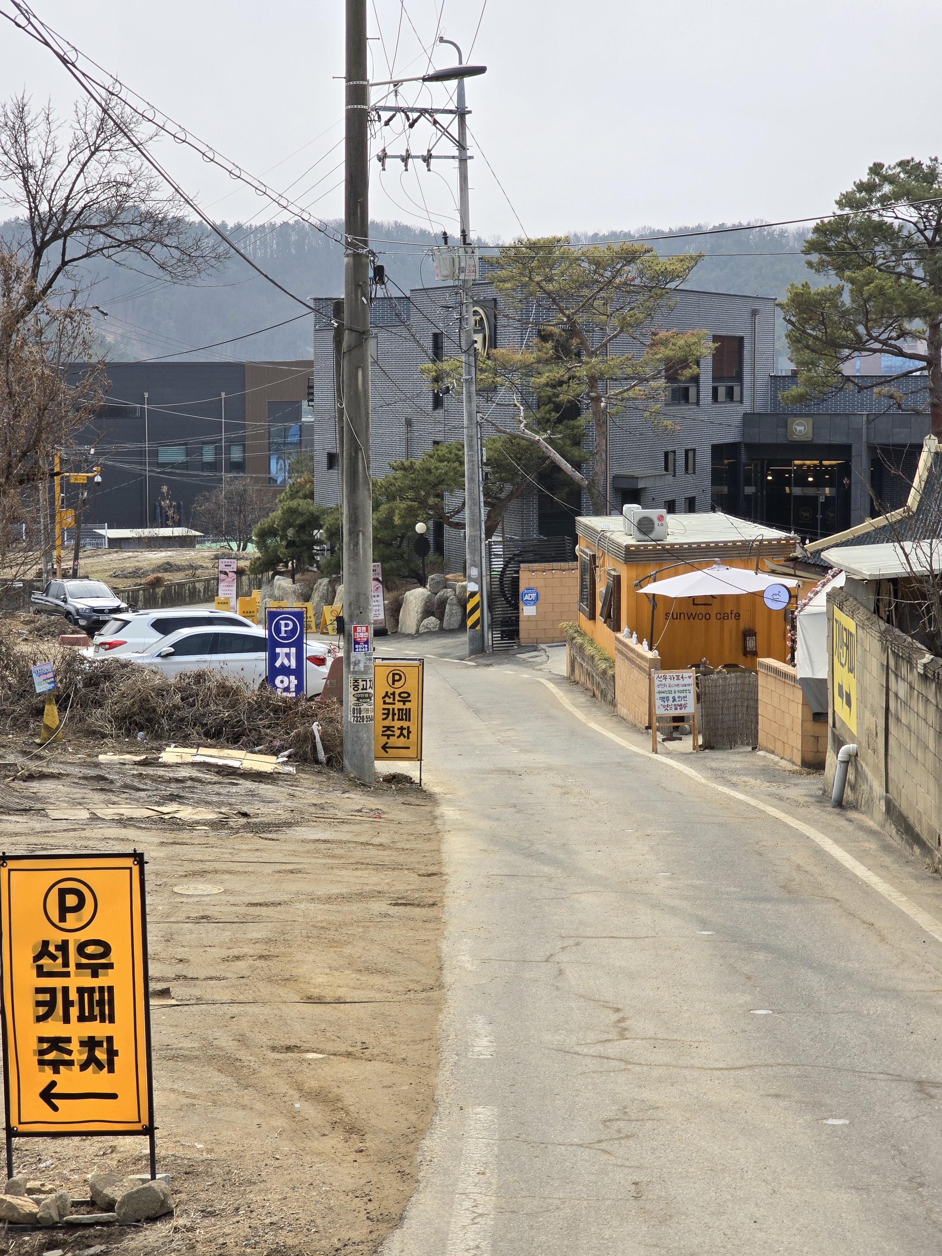 카페 아래쪽에 공터에 무료 주차장이 있다.
